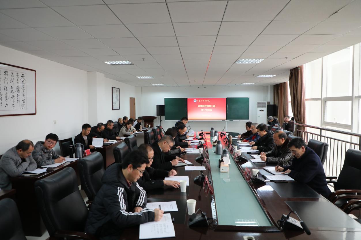 1月5日上午,bat365新冠肺炎疫情防控领导小组第17次会议在勤勉楼第三会议室(1005室)召开,校长何林主持会议。学校党委委员、副校长程绪权、黄保红、艾德春、费虹出席,各二级学院党委书记或院长,各部门主要负责人参加会议。