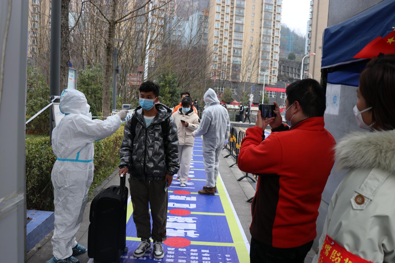 上午8时30分,进行应急演练启动仪式,保卫处全体人员、后勤工作人员和医务人员、寒假护校队员在朝阳门列队参加启动仪式。启动仪式上,保卫处处长余征对本次演练提出要求,学校党委委员、党委组织部部长向虎跃作动员讲话,并宣布应急演练开始。随之,体温检测、安保、消杀等工作小组人员迅速到位,36名护校队学生扮演返校学生按照既定方案依次进行验证、扫码、测温、登记、消杀等程序,并对扮演疑似病例按程序进行了处置,达到了演练即是实战的效果。