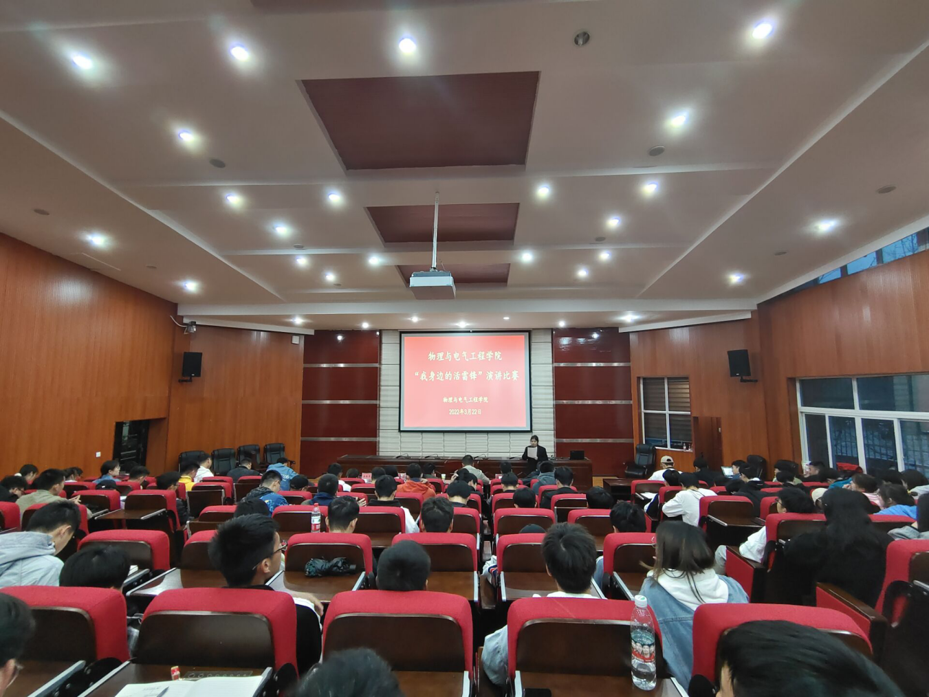为了践行雷锋精神,不断提高学生的思想道德品质。3月22日19时,物理与电气工程学院在博学楼117教室开展“我身边的活雷锋”演讲比赛。物理与电气工程学院党委书记谢春,党委副书记张毓福,以及学生科老师以评委的身份参加了本次比赛。