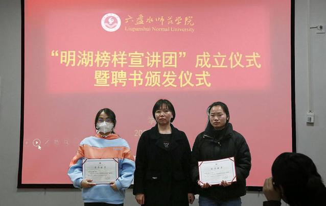 张艳蓉为学校第二届大学生年度人物提名获奖者颁发“明湖榜样宣讲团”宣讲聘书
