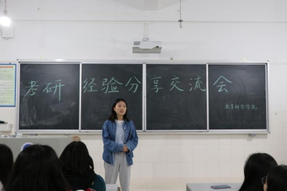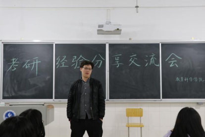 为进一步调动教育科学学院学生考研的积极性,激发同学们的考研热情,让大家对考研有一个更为深入的了解,同时也让同学们更加明确自己的考研目标,掌握相关考研技巧,帮助大家科学备考,4月8日下午20:00,教育科学学院在博学楼104举办考研经验交流分享会。叶泽洲老师、周梦老师和学院有考研意向的全体同学参加交流会。