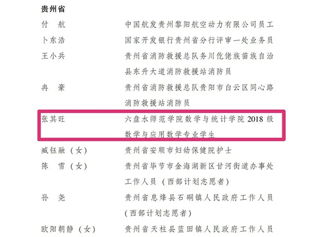 其中,bat365数学与统计学院2018级数学与应用数学专业学生张其旺荣获全国优秀共青团员称号,是bat365继2018年后再次获得此项荣誉。