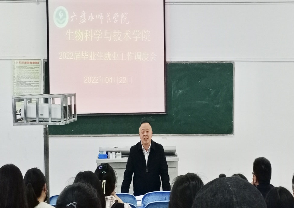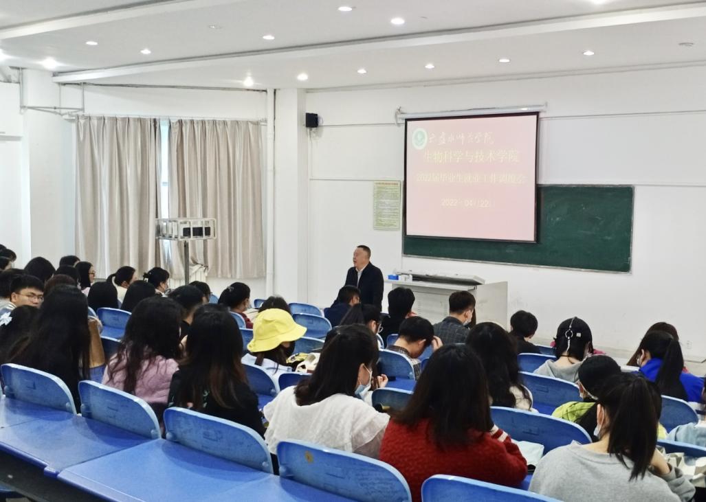 4月22日下午,生物科学与技术学院在博学楼318阶梯教室召开2022届毕业生就业工作调度会暨2022年西部计划宣讲会。学院党委书记王家理出席并讲话,学生科科长陈艳艳主持,辅导员陶梦龙、杨乐及2022届全体毕业生参加了大会。