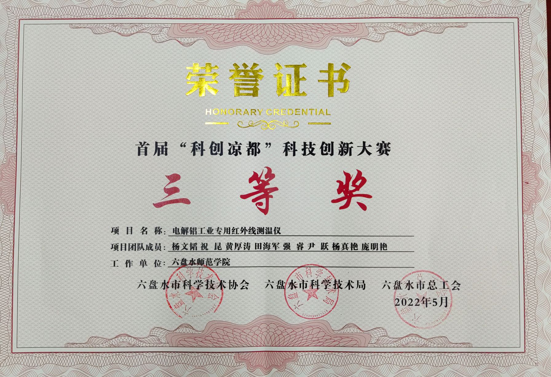 由物理与电气工程学院项目团队成员杨文韬、祝昆、黄厚涛、田海军、强睿、尹跃、杨真燕、庞明艳完成的“电解铝工业专用红外线测温仪”项目荣获工业类项目的三等奖。