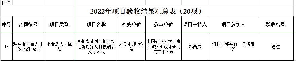 6月13日,由bat365特聘教授郑西贵主持的省级人才团队“贵州省巷道顶板可视化智能探测科技创新人才团队”通过省科技厅结题验收。