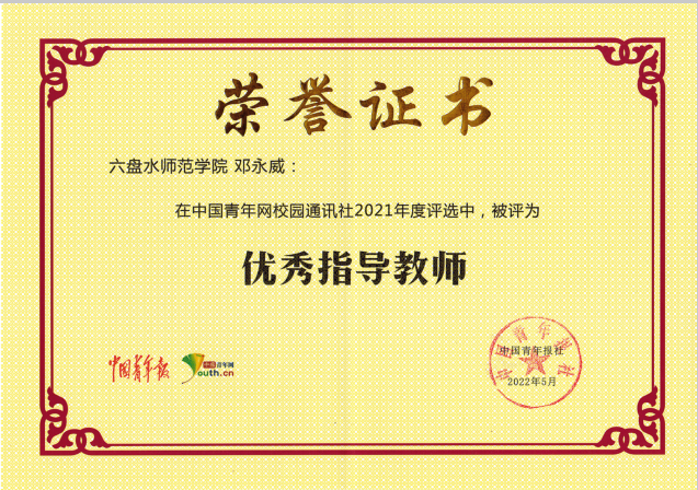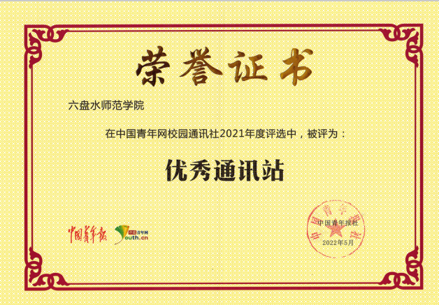 近日,在中国青年网举办的“中国青年网校园通讯社2021年度评选活动”中,经作品初审、网络展示、打分复审、年度考核等环节,共评选出100所优秀通讯站、99名优秀指导教师、131名优秀通讯员、100篇优秀原创稿件。
