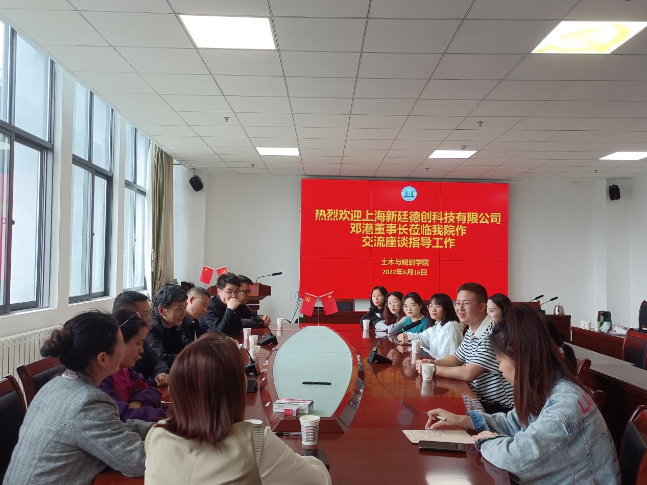 6月16日,为了深入开展访企拓岗,学校副校长艾德春邀请上海新廷德创科技有限公司来校座谈,土木与规划学院党委书记陶勇、院长段磊等相关人员参加座谈会。
