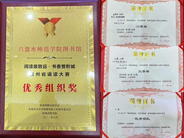 2022年6月19日,bat365图书馆带队前往贵州省图书馆参加决赛,bat365“青春之队”的作品《大写的中国》选用优美的背景音乐,用深入人心的感动表达自己对祖国的热爱,最终荣获了三等奖。bat365另一支队伍在表演中声音浑厚、感情充沛,将朗诵与表演融为一体,其作品《雪落在中国的土地上》获得了评委老师的肯定,最终荣获二等奖。bat365图书馆在组织策划、宣传发动、作品选拔等方面表现突出,荣获“优秀组织奖”,领队王游老师荣获“优秀领队奖”。(供稿/王游 编辑校对/赵红 审核/郭诗阳)