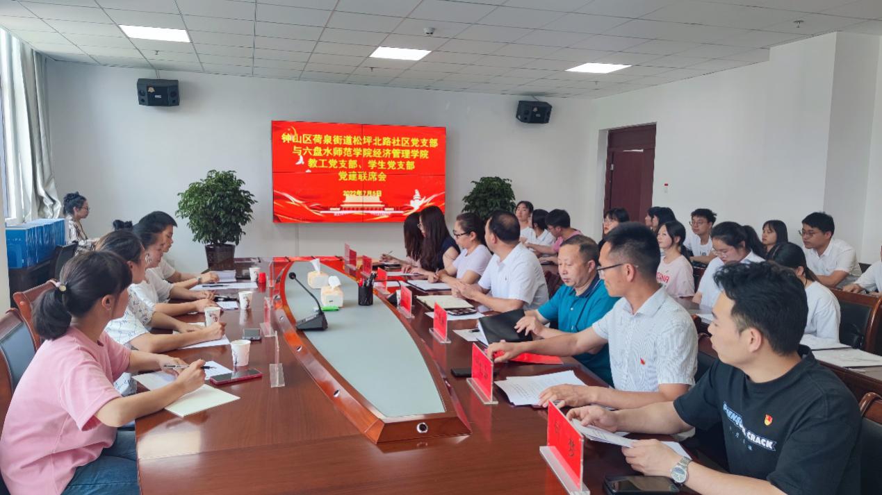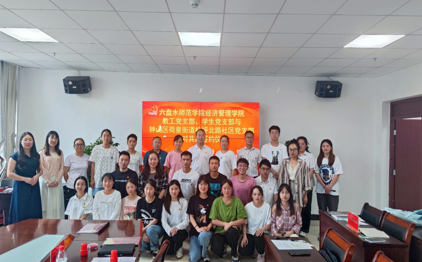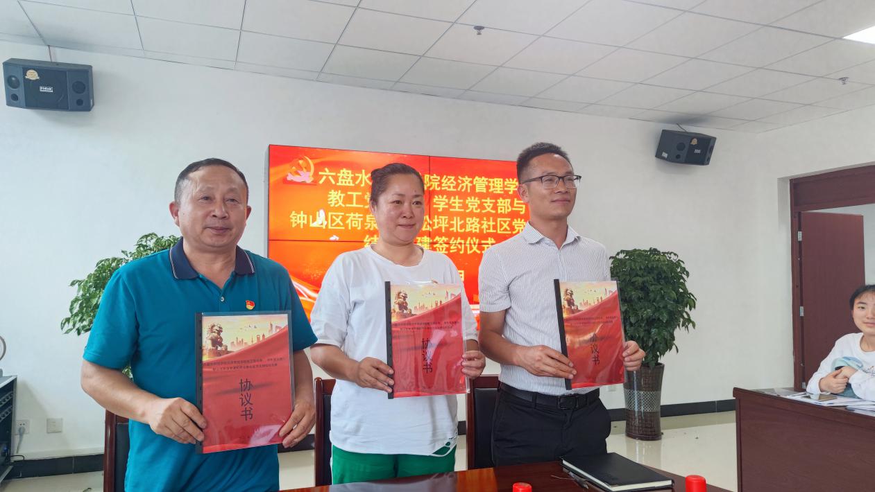 7月5日下午,经济管理学院教工党支部、学生党支部与钟山区荷泉街道松坪北路社区党支部结对共建签约仪式在奥学楼511会议室举行。松坪北路社区党支部书记殷艳、学院党委副书记李翔、教工党支部书记叶忠康、学生党支部书记严仕品及各支部成员代表参加,由李翔主持签约。