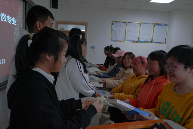 出席仪式的领导及智能会计微专业教学团队教师,为捐赠教材的同学颁发了捐赠感谢卡和纪念品。经济统计学2020级14位同学为智能会计微专业2022级同学捐赠了急需的《会计学》教材。教材捐赠代表许洪杰同学表示,很开心能够为这些书籍找到一个好的归宿,希望同学们能够充分利用这些书籍,努力学好专业知识,打下坚实基础,练就过硬的本领。