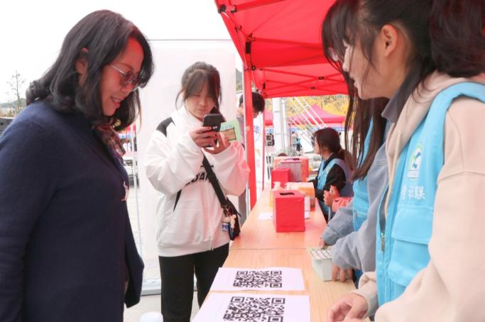 开幕式结束后,同学们在现场工作人员的带领下有序地扫码并领取集章卡。