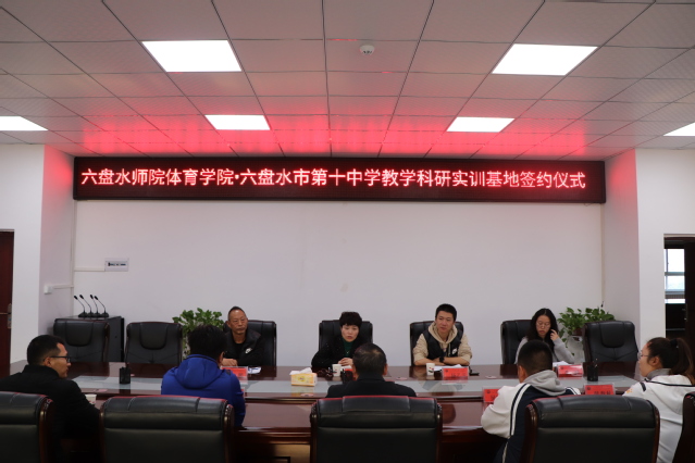 11月8日下午,体育学院院长莫琰带队,公体部主任康熙、教学科研科科长杨乙元、党政办工作人员朱晴一行人前往六盘水第十中学交流学习,并与六盘水第十中学签订教学科研实训基地协议。