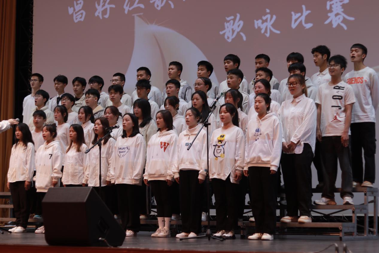 比赛中,各班参赛学生,用歌声表达自己对党和国家的热爱。选手们先后演唱了《我和我的祖国》、《歌唱祖国》、《我的中国心》、《没有共产党就没有新中国》等耳熟能详的红歌。同学们以朝气蓬勃、昂扬向上的精神面貌,热血沸腾、高昂嘹亮的歌声,唱出了心中对党和祖国的无限热爱。而《奔跑》、《追光者》、《勇气》等青春励志的歌曲则唱出了同学们积极向上的心态和乐观应对困难的信心。每一首歌曲的演唱,都赢得了台下观众的热烈掌声。