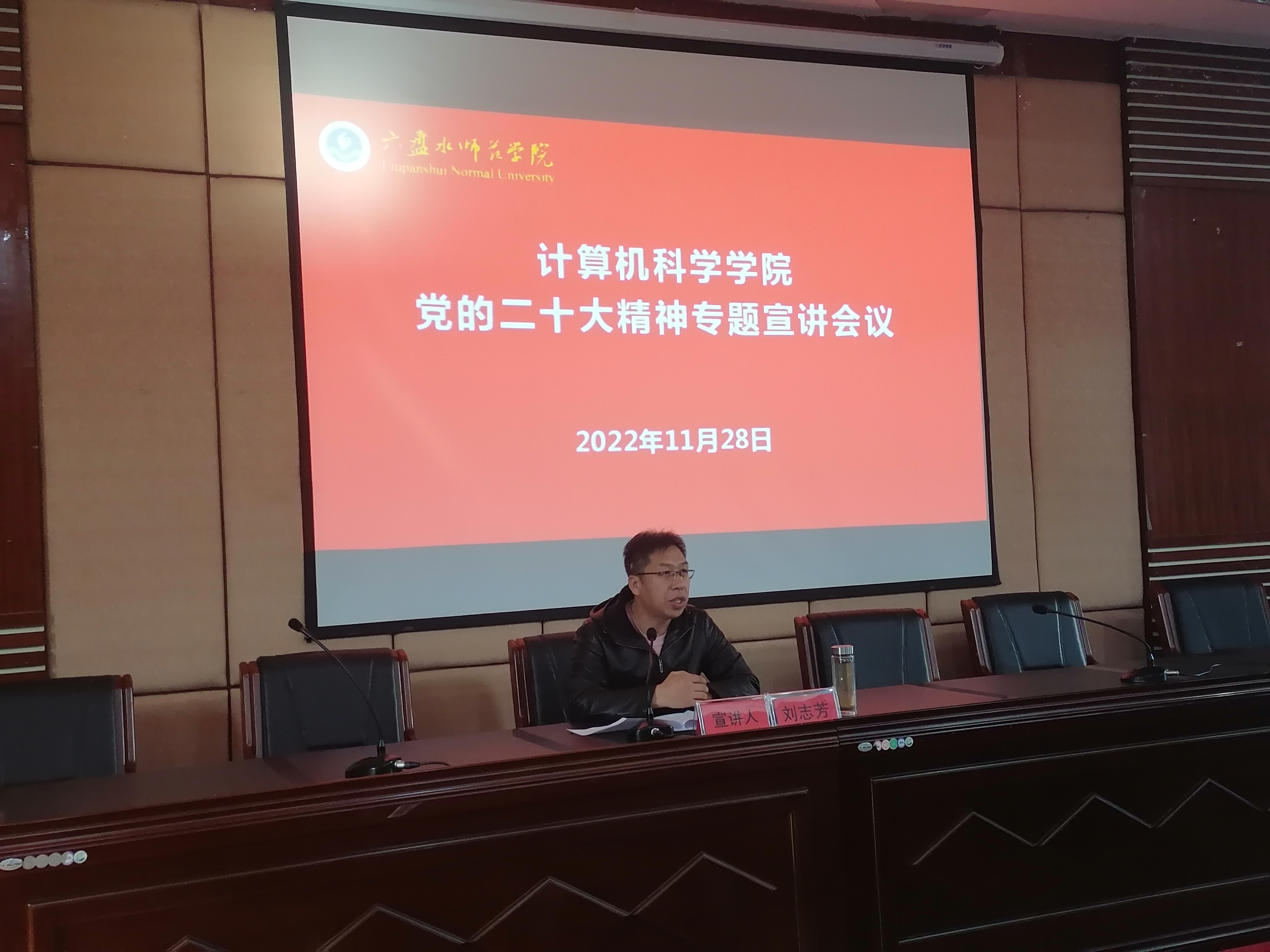 11月28日下午,计算机科学学院在智学楼3楼朝阳讲堂开展党的二十大精神专题宣讲。学院党委书记吕选周,党委副书记、院长刘志芳分别对党的二十大精神进行宣讲。