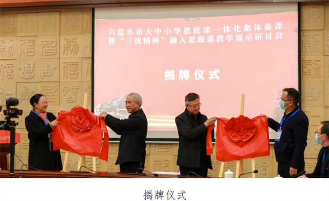 开幕式上,周斯弼、李葆青、李黎、蔡洪江等领导为“贵州省大中小学思政课一体化建设‘手拉手’集体备课中心六盘水分中心”“贵州省大中小学思政课一体化发展研究中心六盘水分中心”揭牌。