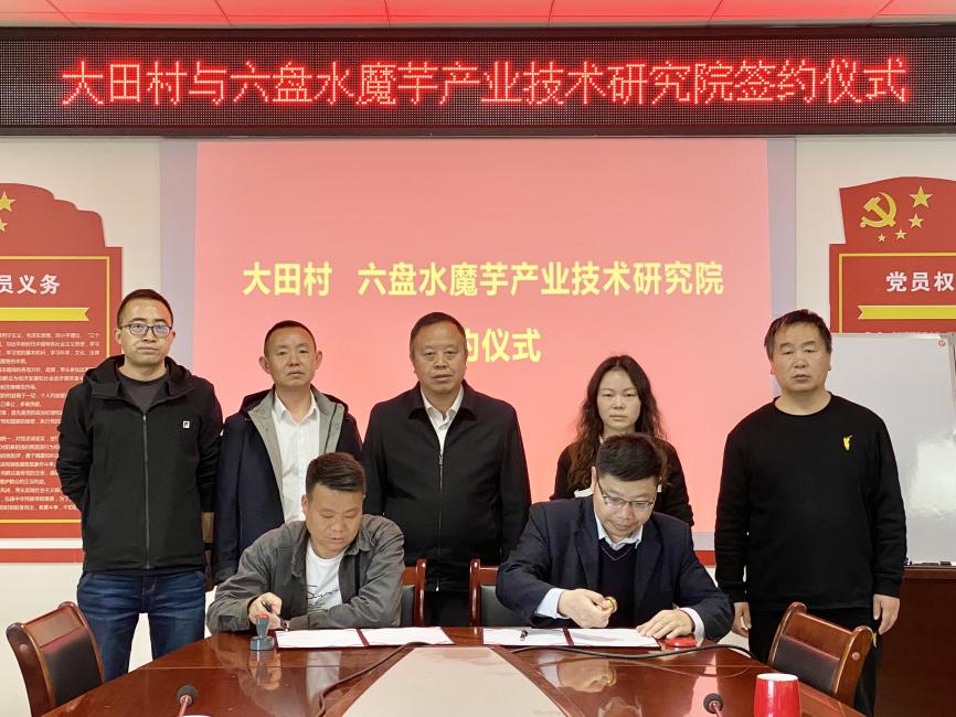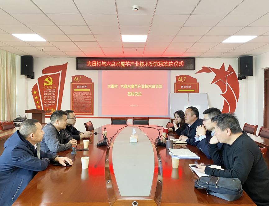 3月23日上午,六盘水魔芋产业技术研究院与水城区玉舍镇大田村在奥学楼A623会议室签署合作共建魔芋科研基地协议。生物科学与技术学院党委书记王家理、院长兼研究院院长熊荣川、党委副书记方玉梅、副教授周雪林与大田村村民委员会主任邓兴美及学校驻大田村干部陆伟、王应权交流座谈。