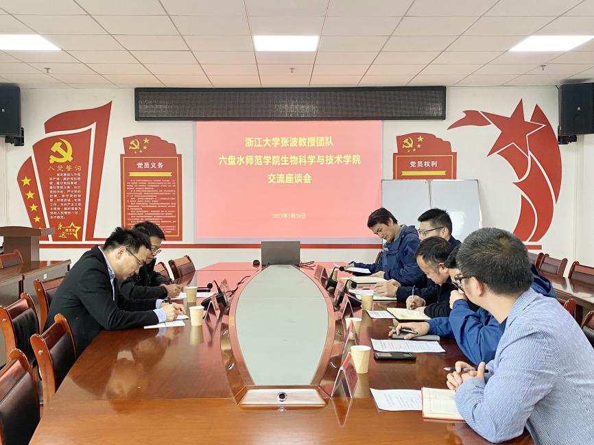 3月26日上午,浙江大学教授张波、华为六盘水分公司总经理辛瑞到生物科学与技术学院交流座谈。座谈会在奥学楼A623会议室举行,由学院党委书记王家理主持。学校科研处处长严凯,学院院长熊荣川、副院长张书东出席,学院副教授韩世明及党政办公室工作人员参加。