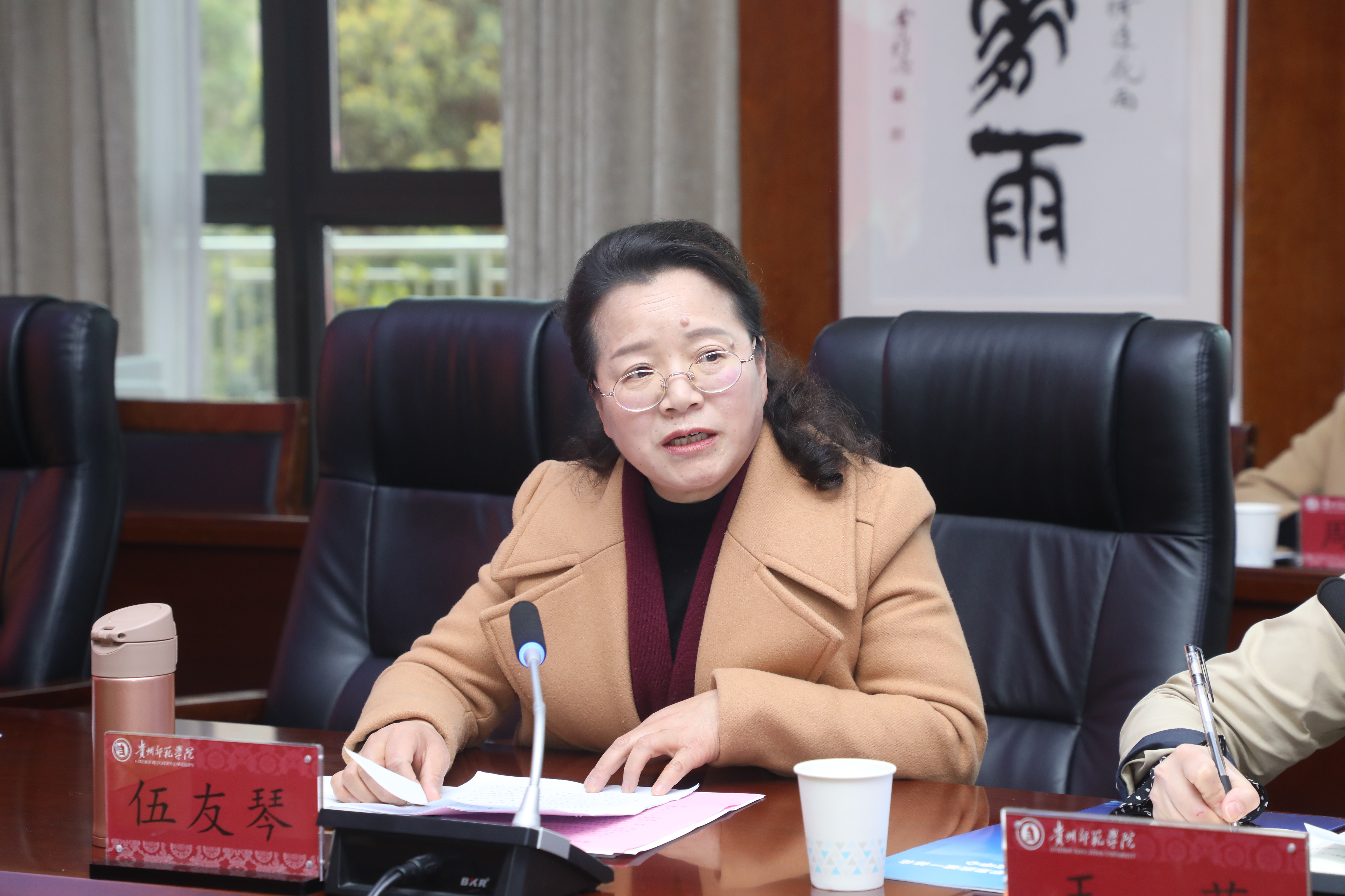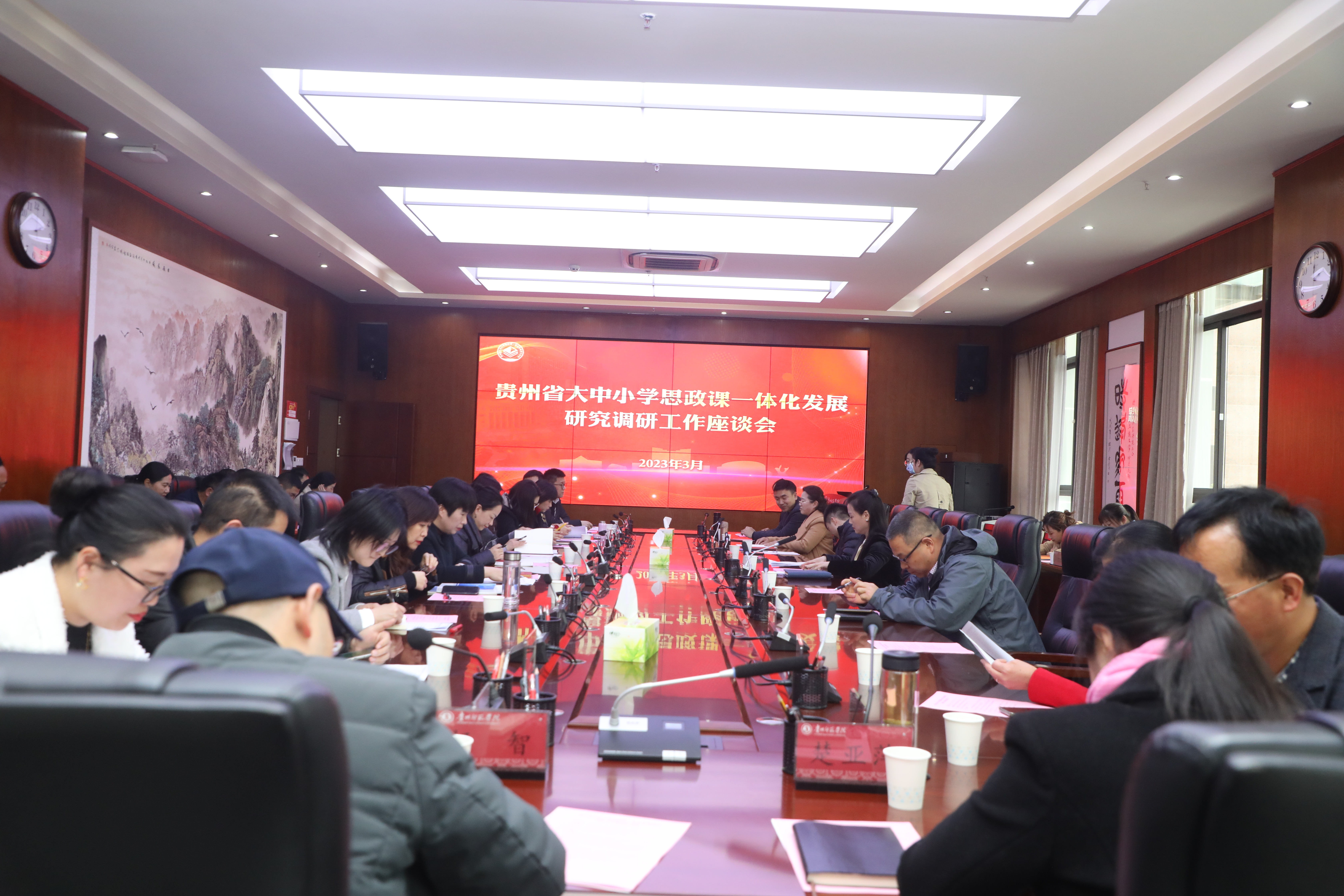 3月28日, 为全面、及时、准确、客观地反映贵州省大中小学思政课建设情况,推进我省大中小学思政课一体化发展研究,为思想政治工作提供决策咨询服务,贵州省大中小学思政课一体化发展研究情况调研工作座谈会在贵州师范学院召开。贵州省参加“3٠18”座谈会的3位代表、省教科院、贵阳市教科所不同学段教研员、部分省直高校马院负责人、遵义市教育局代表,bat365马克思主义学院院长伍友琴教授、副院长张绪清教授、六盘水市第二实验中学副校长周金华、六盘水市第十一中学副校长李天、六盘水市第二十一中学副校长张宏、六盘水市钟山区第十五小学校长黄贵、水城区第二小学校长徐鸿雁、盘州市第二小学吴明华副校长以及教师胡玮等贵州省大中小学思政课一体化发展研究中心六盘水分中心大中小学研究员代表一行12人参加了座谈会。座谈会由贵州师范学院教师工作部部长、贵州省大中小学思政课一体化发展研究中心副主任王茜主持。