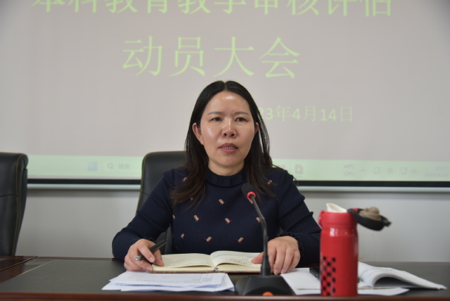 最后,陈定梅强调,一是统一思想,提高认识。审核评估工作是顺应高等教育历史性、根本性变革的迫切需要,全体教职工要认清形势、把握大势,切实把思想认识统一到学校审核评估工作要求上来,全力以赴、团结一致做好审核评估工作。二是把握内涵,抓住重点。全体教职工要精准把握审核评估的核心要素和内涵要求,应对好新一轮审核评估工作的新变化、新要求,切实把工作中心转移到内涵建设和教育教学改革上来;要树立质量第一的意识,将质量要求、质量标准、质量评价、质量改进等落实到教育教学各环节。三是压实责任,狠抓落实。根据学校提出的60项重点建设任务清单,学院将进一步召开专题会议进行指标解读,对照内容标准逐项分解任务,对照任务逐项压实责任,对照目标责任逐项督查督办,形成“评估重担大家挑,人人身上有指标”良好工作态势,确保学院审核评估工作高效有序推进。