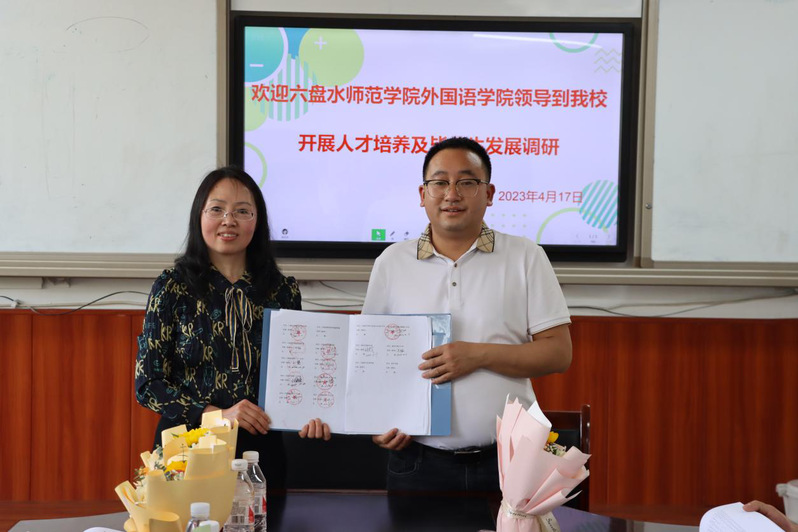 4月17日,外国语学院院长彭雪梅教授、副院长吴得禄教授、教学科研科科长王晓玥、学生科副科长陈善帆、英语系副主任汪阳、副教授张力博士、教师教育课程教师王珠凤娇一行七人,在贵州省“黔灵名师”、贵州省初中英语乡村名师工作室主持人左玉梅老师、盘州市教育研训专班初中英语教研员宋恩明老师的陪同下到盘州市盘江中学和盘州市第四中学开展联合教研暨人才培养调研活动。