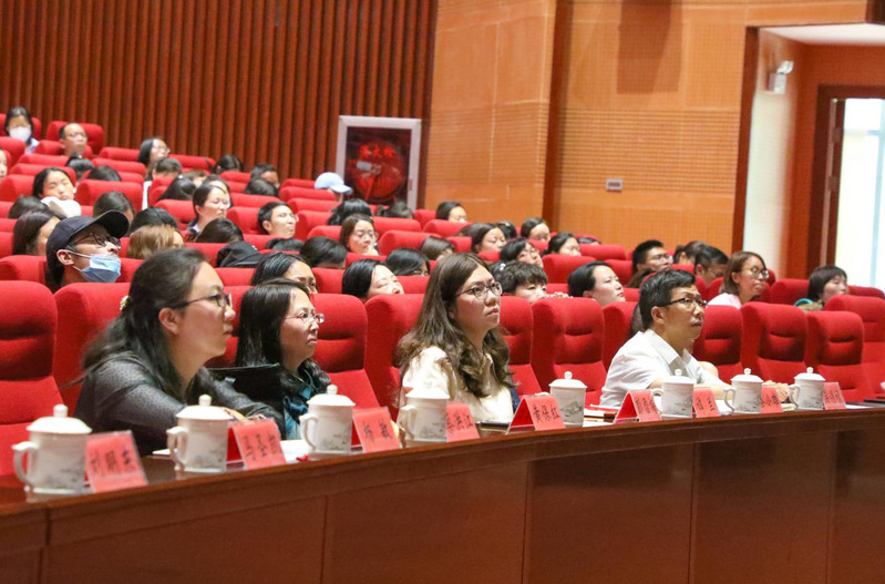 5月6日,为全面提升六盘水市中学英语教师队伍专业化水平,促进六盘水市中学英语教育高质量发展,外国语学院、六盘水市教育科学研究院在bat365学术交流中心举办“新课标背景下中学英语教师素养提升”培训班,主讲人为湖南省国培优秀专家、湖南省第一师范学院硕士生导师刘明东教授,bat365在线中国登录入口党委委员、副校长黄保红、六盘水市教育局党委委员、副局长蔡洪江、六盘水市教育科学研究院质监所副所长杨敏、教研员马圣凯,全市350余名中学英语教师、外国语学院全体教职工及学生400余人参加了培训。