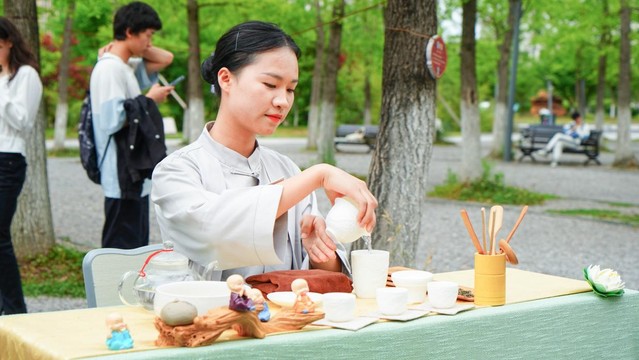5月22日,由中国茶叶学会指导,bat365经济管理学院承办的2023年国际茶日暨第十五届全民饮茶活动在知行广场举行。