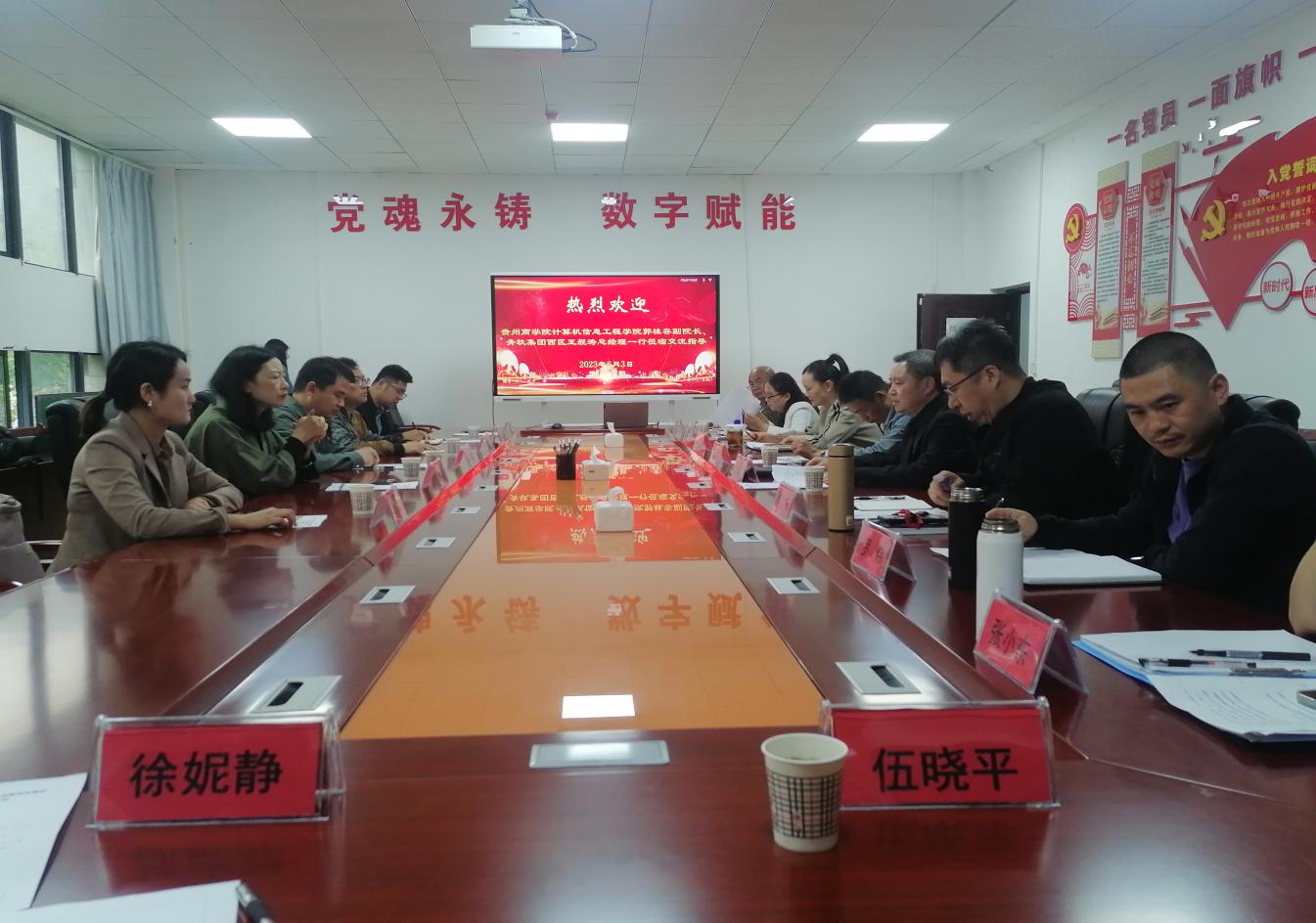 6月5日,贵州商学院计算机与信息工程学院副院长郭桂容、物联网工程教研室主任张俊、数据科学与大数据教研室副主任刘梦珠和骨干教师刘彦虬,青软集团西区总经理王舰涛和六盘水项目负责人田苗等人到我院考察交流。我院党委书记吕选周,院长刘志芳,副院长英锋和相关专业负责人参加了座谈会。会议由刘志芳主持。