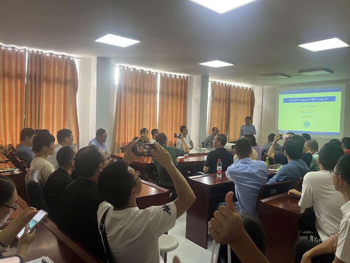 袁业飞教授、李会民教授分别为学院师生代表作了题为《给黑洞拍照:黑洞视界望远镜对M87*和SgrA*超大质量黑洞的首次成像观测》《超级计算平台对研究型大学科研的支撑作用》的学术报告,介绍了相关工作的背景和研究现状,交流了对相关领域的独特见解,分享了研究过程中所需把握的关键科学理论及技术应用问题,并与师生们进行了深入交流。
