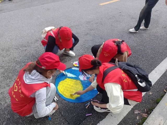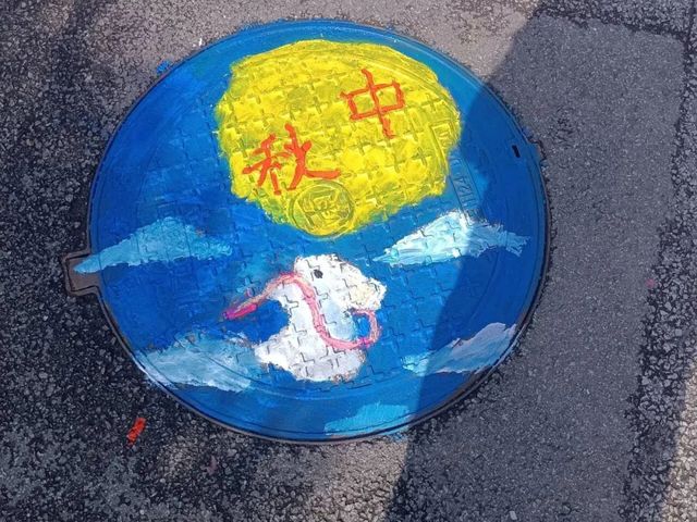在活动准备阶段,志愿者们积极搜集绘画的图片、整理和清查绘画工具。在活动开展过程中,志愿者们分工明确,有条不紊地进行着涂鸦绘画工作。涂鸦绘画过程中,也吸引了不少同学与志愿者共同创作。志愿者们顶着太阳,但是从不抱怨,不偷懒,认真地为井盖“穿上”靓丽的新衣。最后,在志愿者们的共同努力下,一共创作了12幅关于中秋节相关的绘画作品。