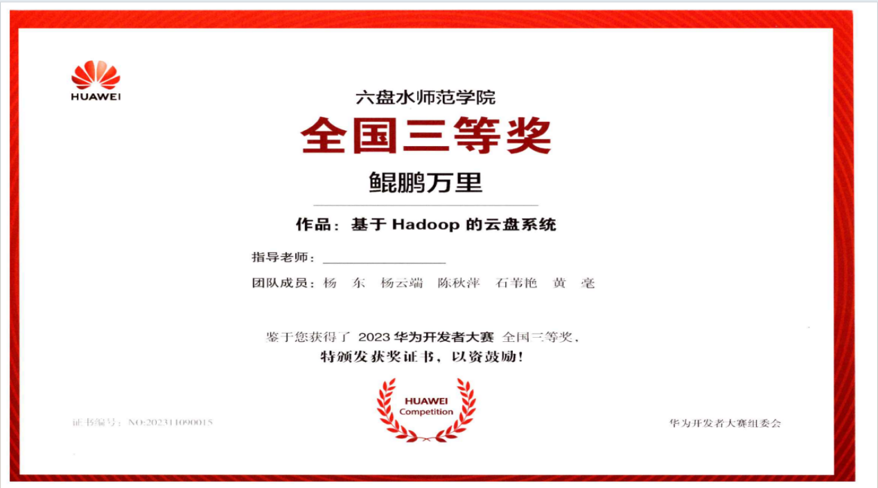学院师生在2023年华为开发者大赛和鲲鹏应用创新大赛中再创佳绩,共取得华为开发者大赛全国三等奖3项,鲲鹏应用创新大赛贵州省三等奖1项、优胜奖2项。