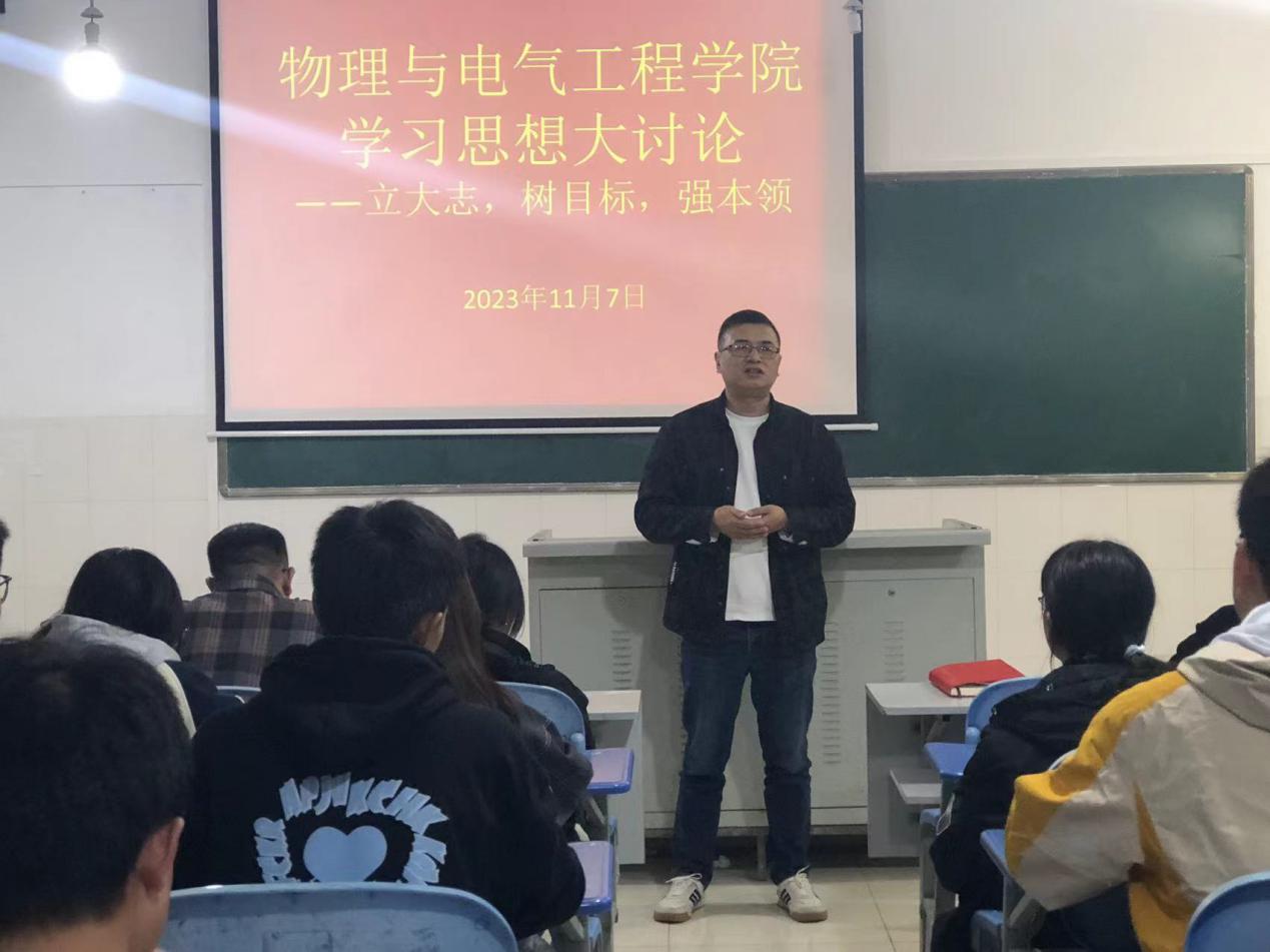 为了更好落实立德树人根本任务,加强物理与电气工程学院学风建设,11月7日,学院党委领导班子成员以及党支部书记、各科室负责人、辅导员深入2023级各班级,以主题班会的形式,在博学楼组织开展了“学习思想大讨论”活动。