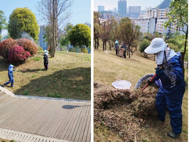 在行动中,绿化养护工作人员和保洁工作人员展现了高度的专业素养和团队合作精神。他们不畏脏乱,不怕辛苦,认真细致地对校园绿化进行浇水施肥,清理校舍周边的垃圾和枯枝落叶,修剪绿化带中的枯枝,拔除杂草,拾取废弃物,确保校园环境整洁美观。