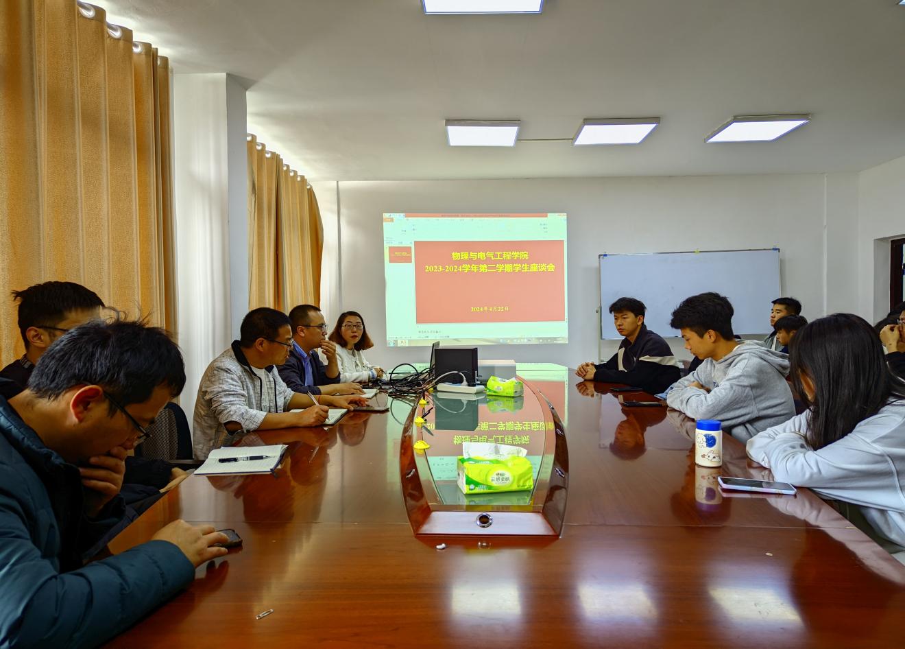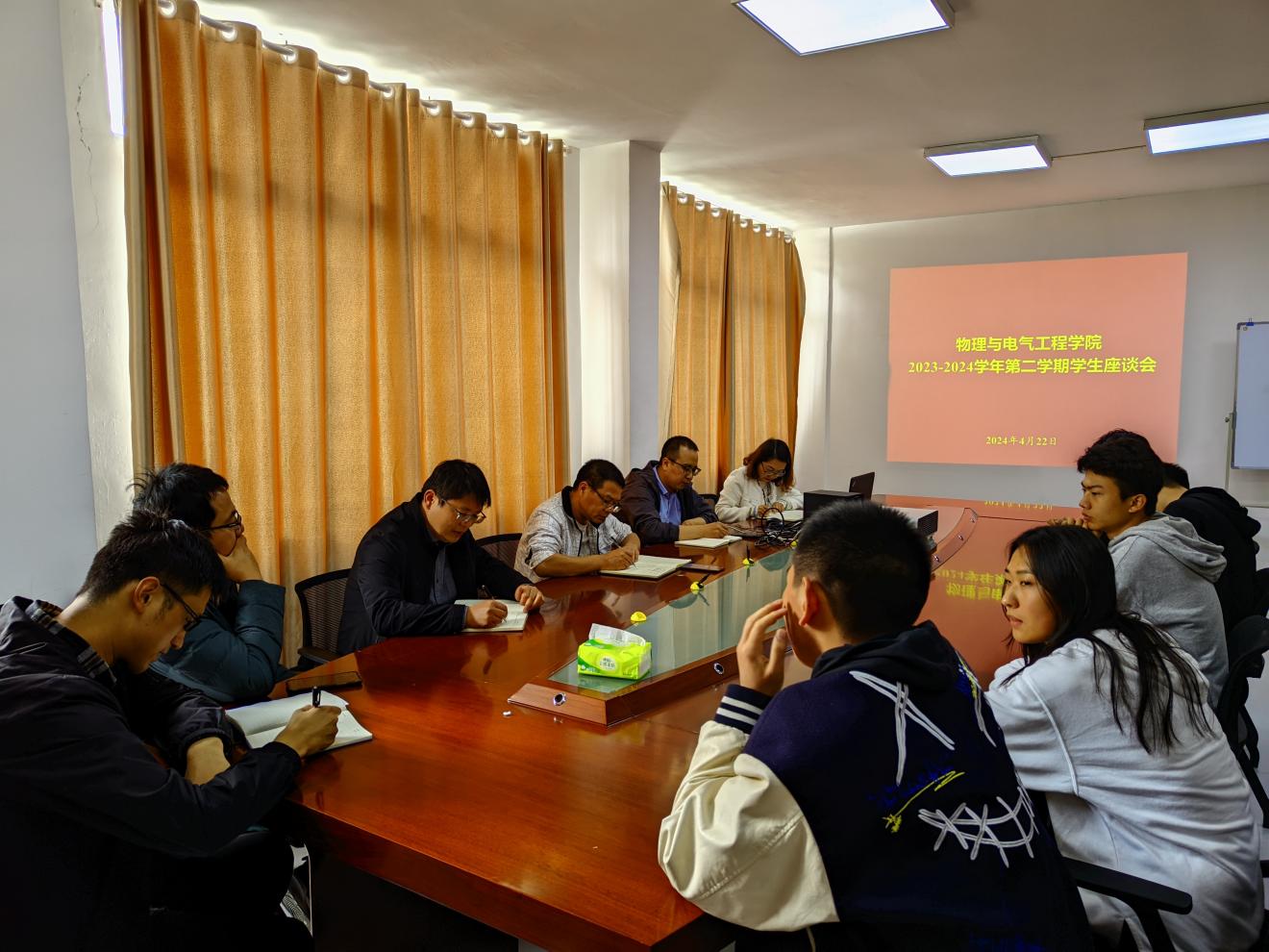 为了积极听取学生的意见与建议,了解学生在学习及生活中遇到的问题和困难,进一步改善学习环境和提高管理服务水平,4月22日下午,物理与电气工程学院在笃行楼三楼会议室召开2023-2024学年第二学期学生座谈会。学院党委副书记张毓福、副院长冯俊杰、学生科负责人、教学科研科科长、各教学系主任、各班学生代表参加此次会议。会议由冯俊杰同志主持。