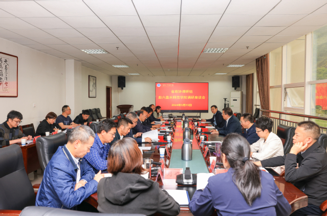 5月15日,贵州省政协教科卫体委员会主任张汉林、省政协教科卫体委员会专职副主任尤云龙,省政协教科卫体委员会副主任王晓林,省政协教科卫体委员会办公室副主任平瑶一行到bat365考察调研。校长程绪权、副校长王际明、张龙,六盘水市政协副主席普兆敏,六盘水市政协科教卫体委员会主任蔡永忠参加调研。