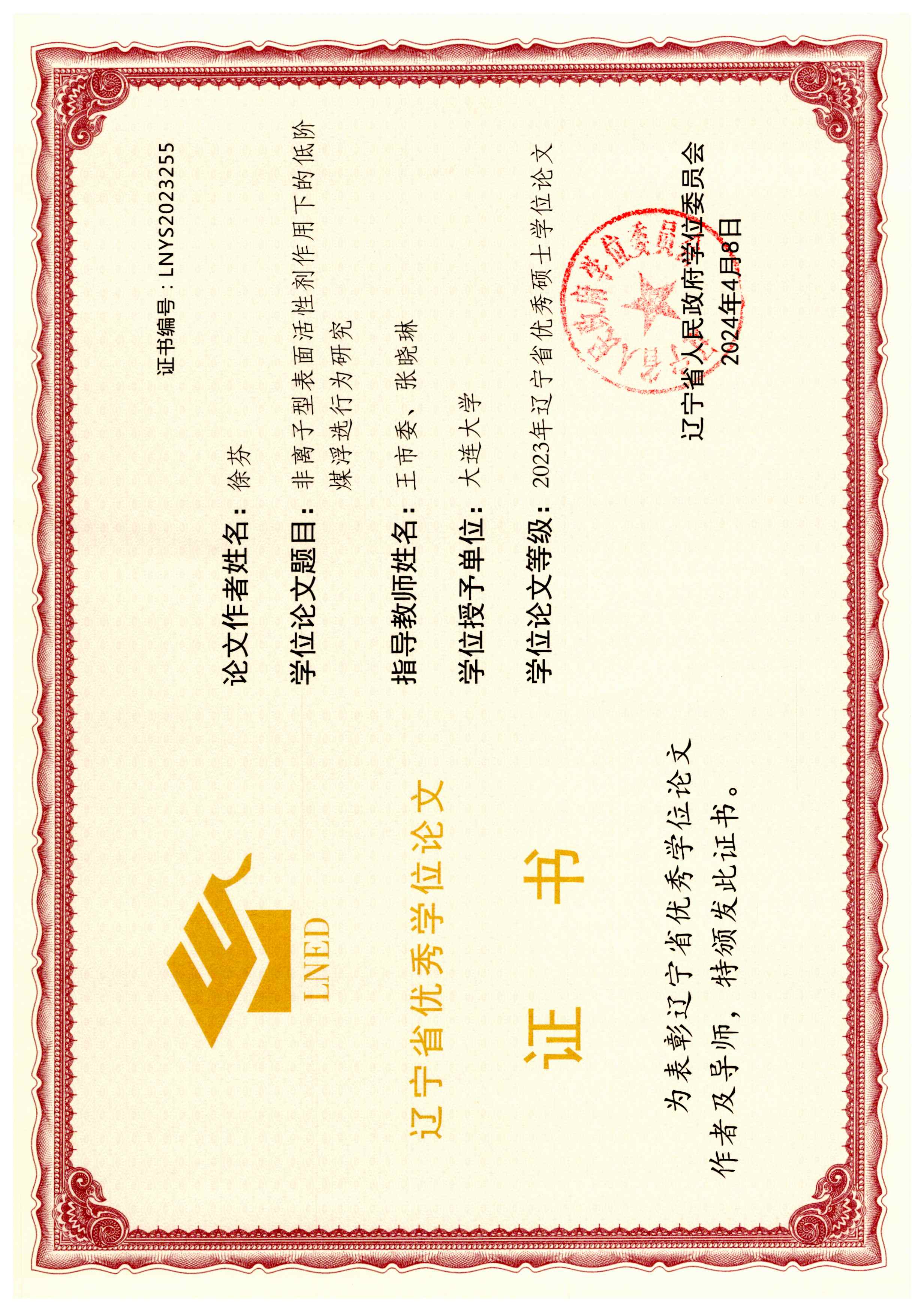 王市委指导的联合培养研究生毕业论文被评为辽宁省优秀毕业论文