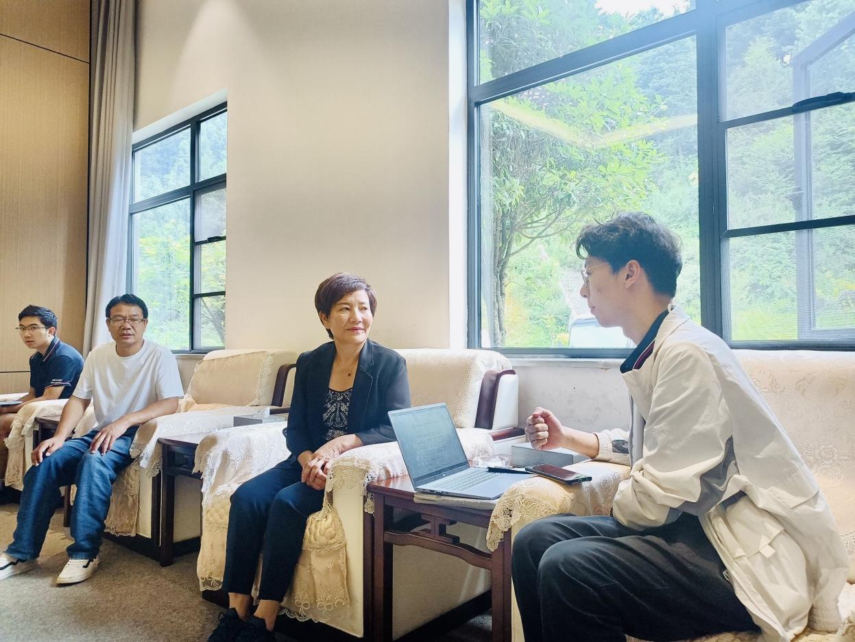 访谈岩博村党委书记、岩博酒业总裁余留芬现场