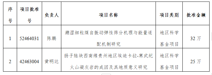 近日,国家自然科学基金委员会发布了2024年国家自然科学基金集中接收申请项目评审结果,矿业与机械工程学院矿物加工工程系陈鹏、地质工程系黄明达两位老师申报的科研项目,获批国家自然科学基金地区科学基金项目立项资助。(供稿/孙光裕 编辑校对/初瑛 审核/卢香宇)