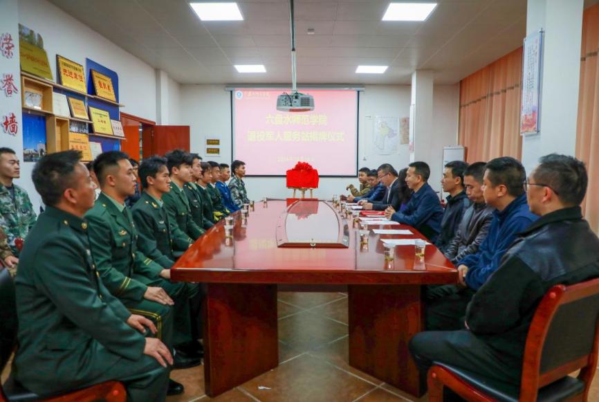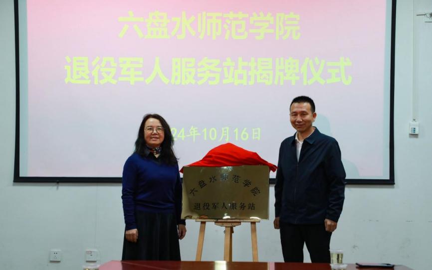 10月16日上午,bat365在线中国登录入口退役军人服务站揭牌仪式在学生活动中心举行。学校党委委员、副校长费虹,六盘水市退役军人事务局党组成员、水城军用饮食供应站站长卜珍虎为退役军人服务站揭牌。