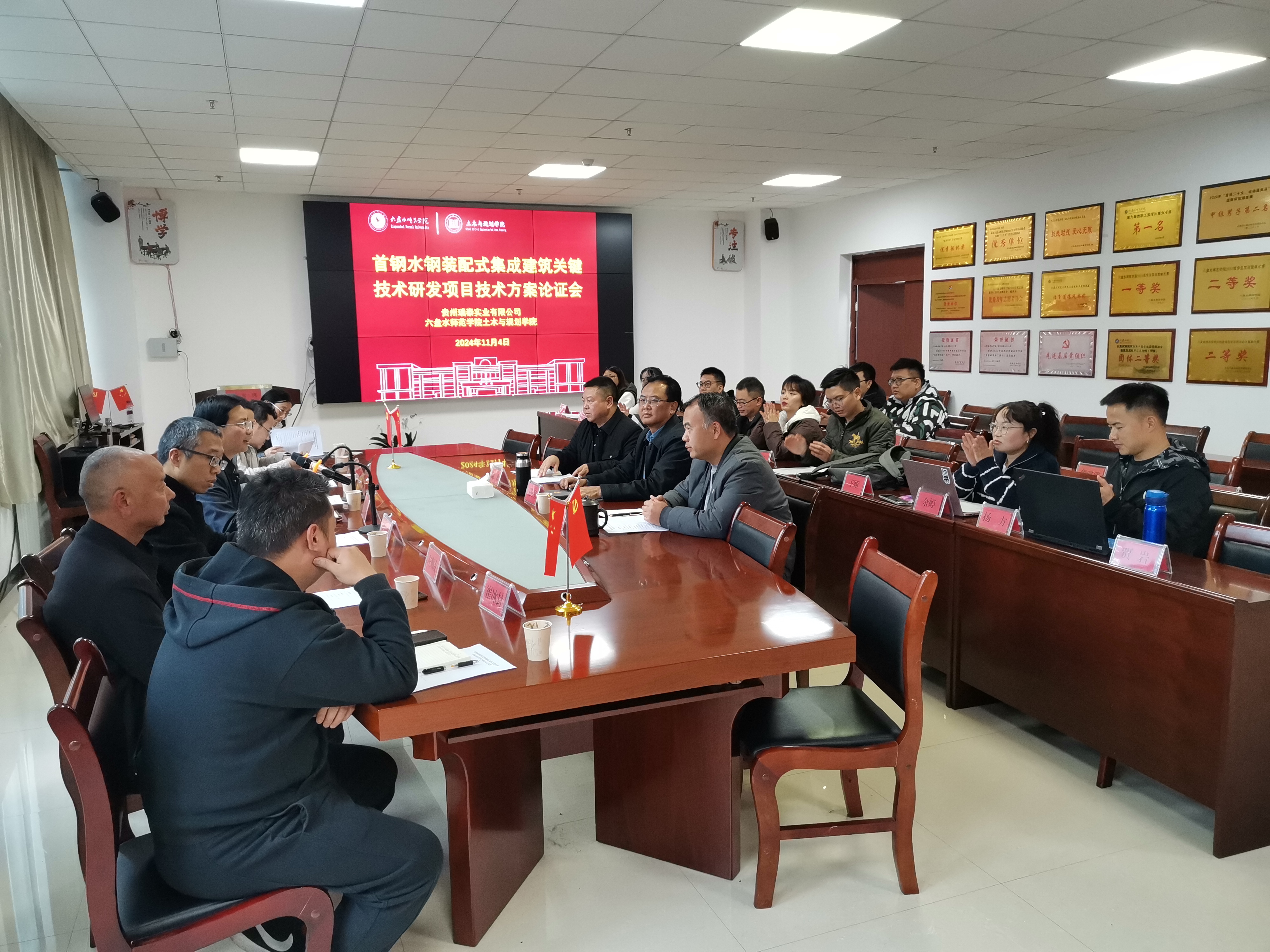 11月4日下午,土木与规划学院在奥学楼1107会议室召开主题为“首钢水钢装配式集成绿色建筑关键技术研发项目技术方案”的论证会。bat365在线中国登录入口副校长王际明出席会议,贵州省建筑设计院王佳炜,六盘水经开区住建局李涛,六盘水市住建局臧朝利,贵州瑞泰实业有限公司郑克勤、冉秀清、崔冰封,贵州瑞泰胜源科技公司张涛松、朱程巧,嘉宾左顺友,肖波及各科室各系负责人参加了会议。会议由学院党委书记陶勇主持。