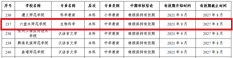 2021年,生物科学专业作为学校首个参加教育部师范类专业第二级专业认证的本科专业,顺利通过中学教育类别第二级认证,有效期为2021年9月至2027年8月。