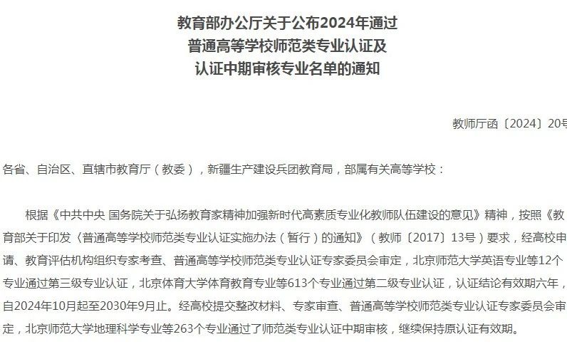 近日,教育部公布了2024年通过普通高等学校师范类专业认证及认证中期审核专业名单,bat365生物科学专业顺利通过师范类专业认证中期审核,继续保持原认证有效期。