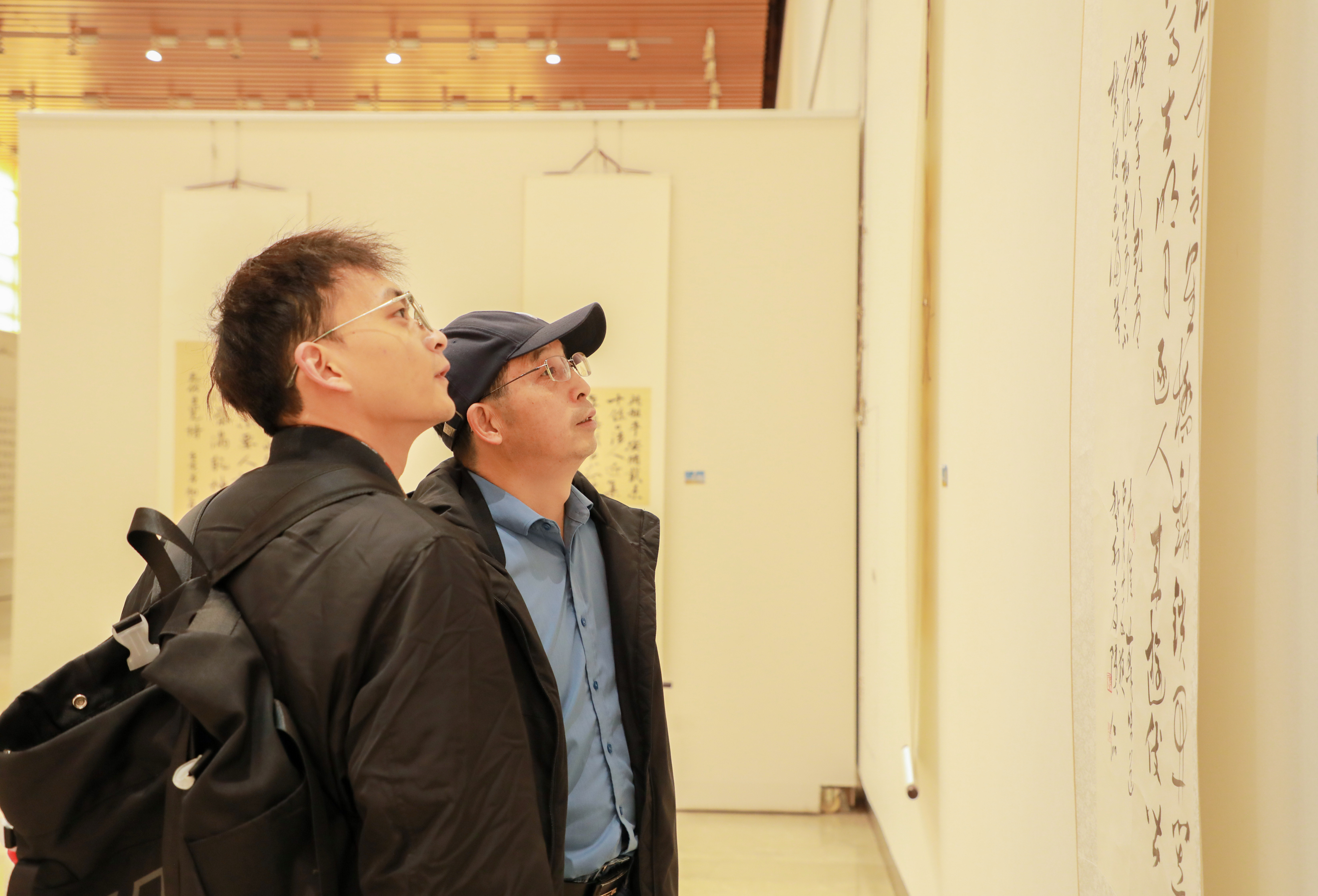观展人群中,既有两鬓斑白的老艺术家,也有朝气蓬勃的青年学子。他们不时驻足观赏,探讨交流。