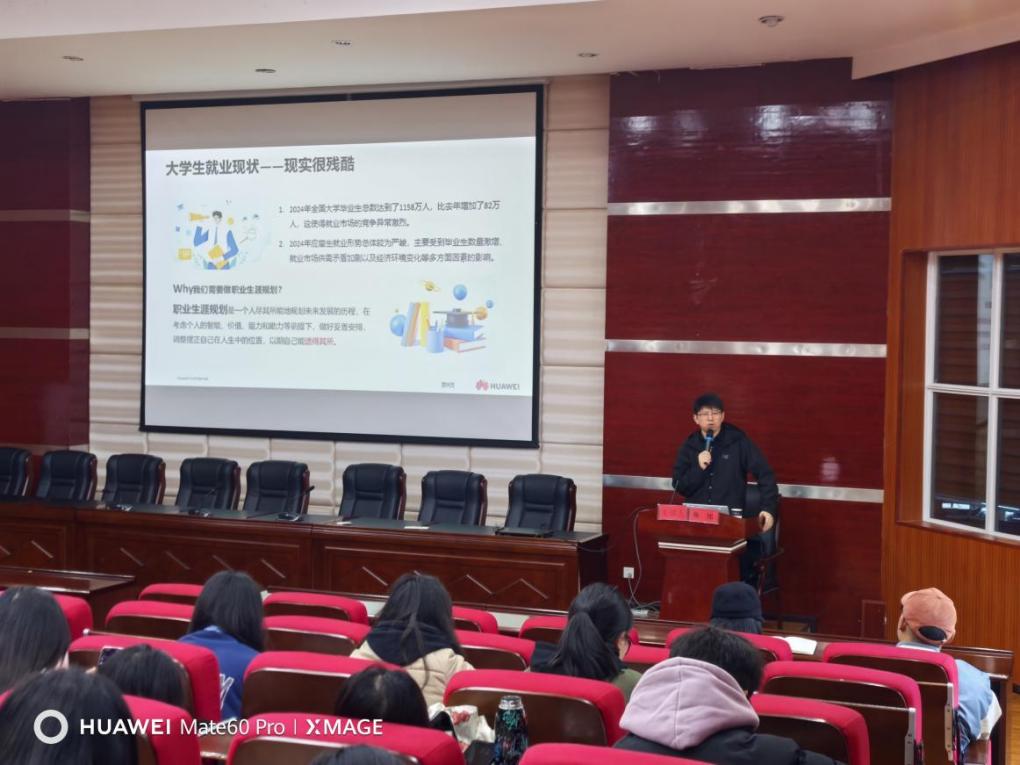 11月19日,华为全球培训中心市场部人力资源负责人、人力资源专家张旭应邀为全校学子作题为《职海无涯 路在脚下》的就业讲座,开展校企合作的“双向奔赴”就业指导活动。本次讲座由学校招就处、计算机科学学院主办。
