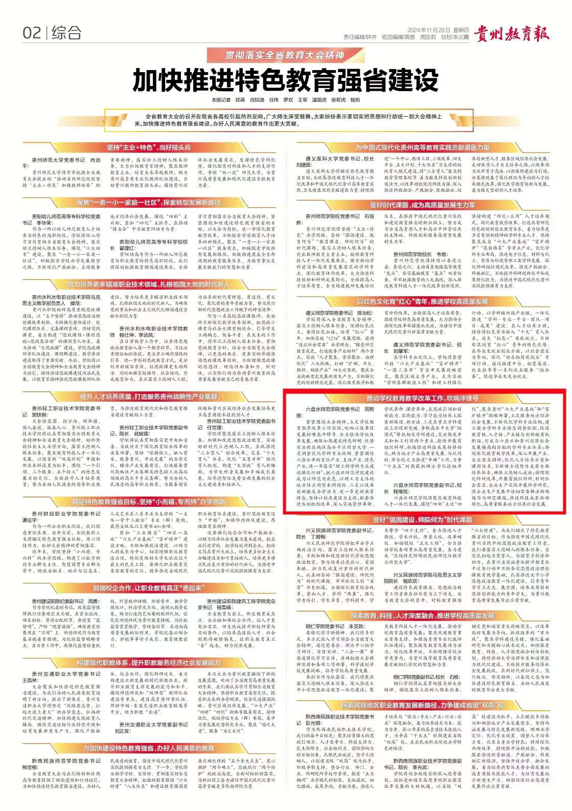 从党的二十届三中全会到全国教育大会,从省委十三届五次全会到全省教育大会,都对深化教育综合改革作出了重大决策部署,为我们做好新时代新征程上的高等教育指明了方向、提供了遵循。