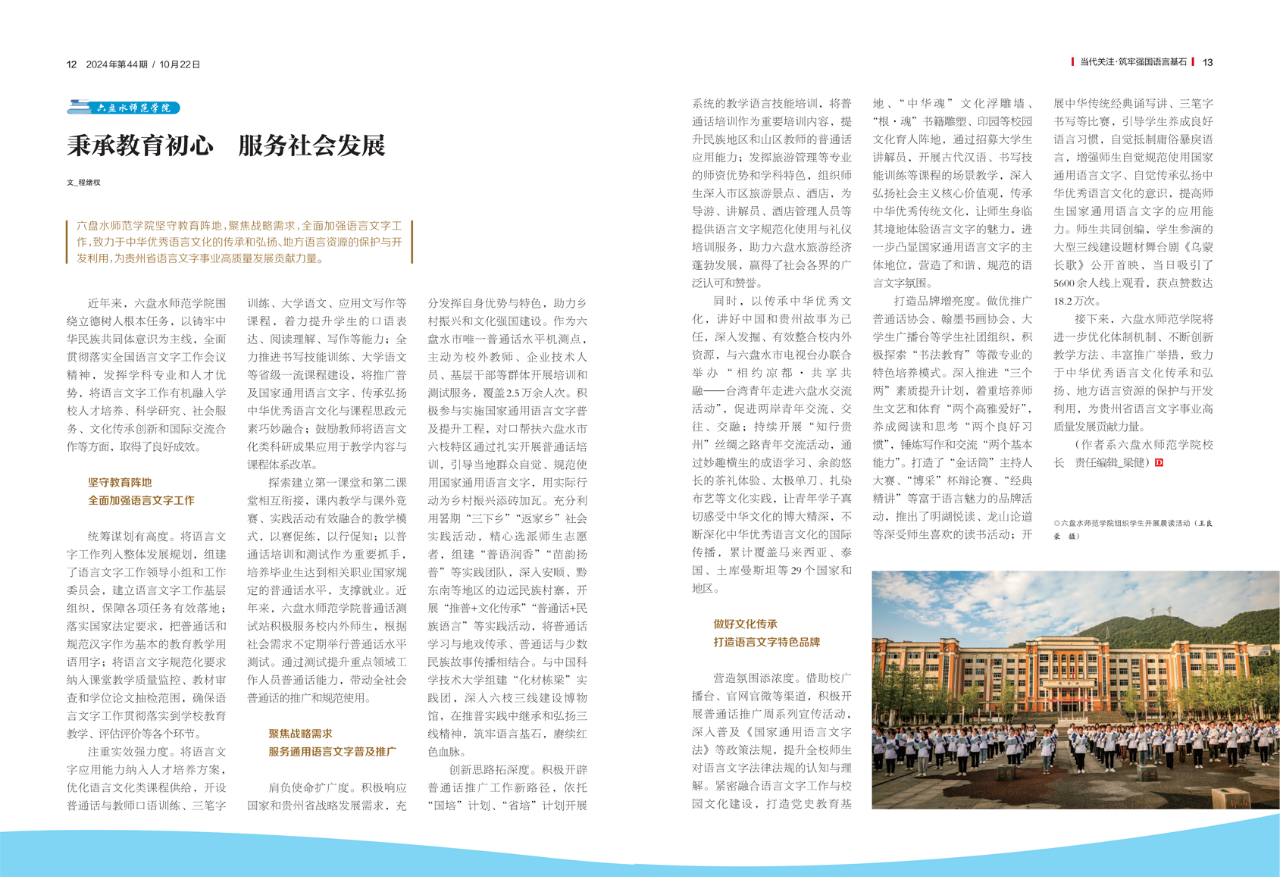 近日,《当代贵州》推出《高教力量》特刊,刊发学校校长程绪权署名文章《秉承教育初心 服务社会发展》。
