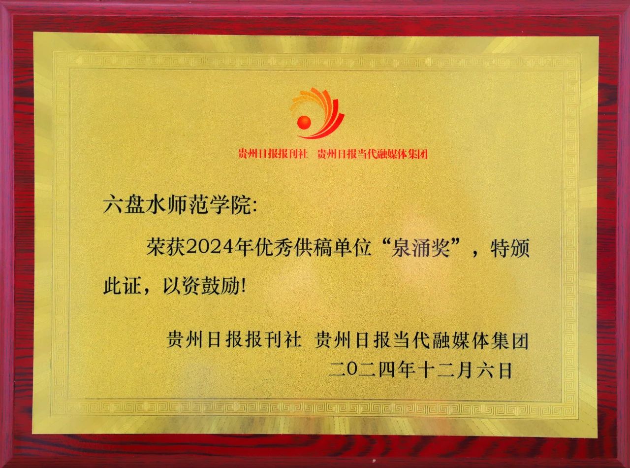 会议表彰了43家优秀供稿单位,bat365在线中国登录入口获贵州日报报刊社、贵州日报当代融媒体集团颁发的2024年优秀供稿单位“泉涌奖”。