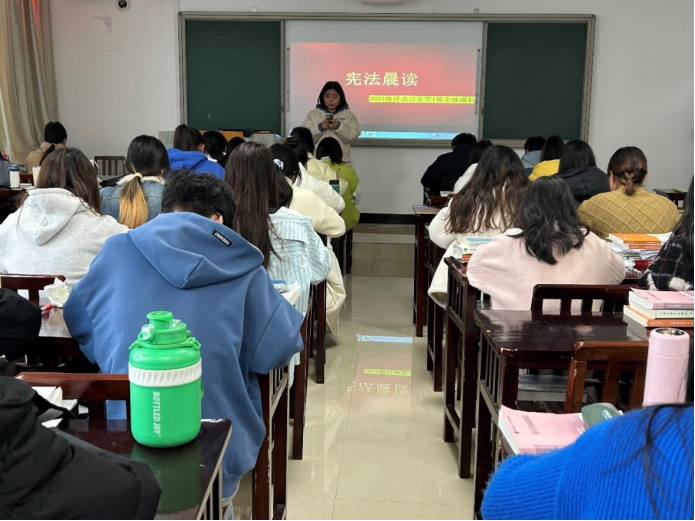 国家宪法日,学校在知行广场举行“宪法晨读”主题升国旗仪式。同学们整齐列队,庄严诵读宪法条文,声音洪亮而坚定,用青春之声诠释着对法治的信仰,彰显了青年学子对宪法的敬畏与尊崇。同时,全校各二级学院积极响应,以班级为单位,组织5000余名学生参加“宪法晨读”活动,宪法在晨读中传遍校园。