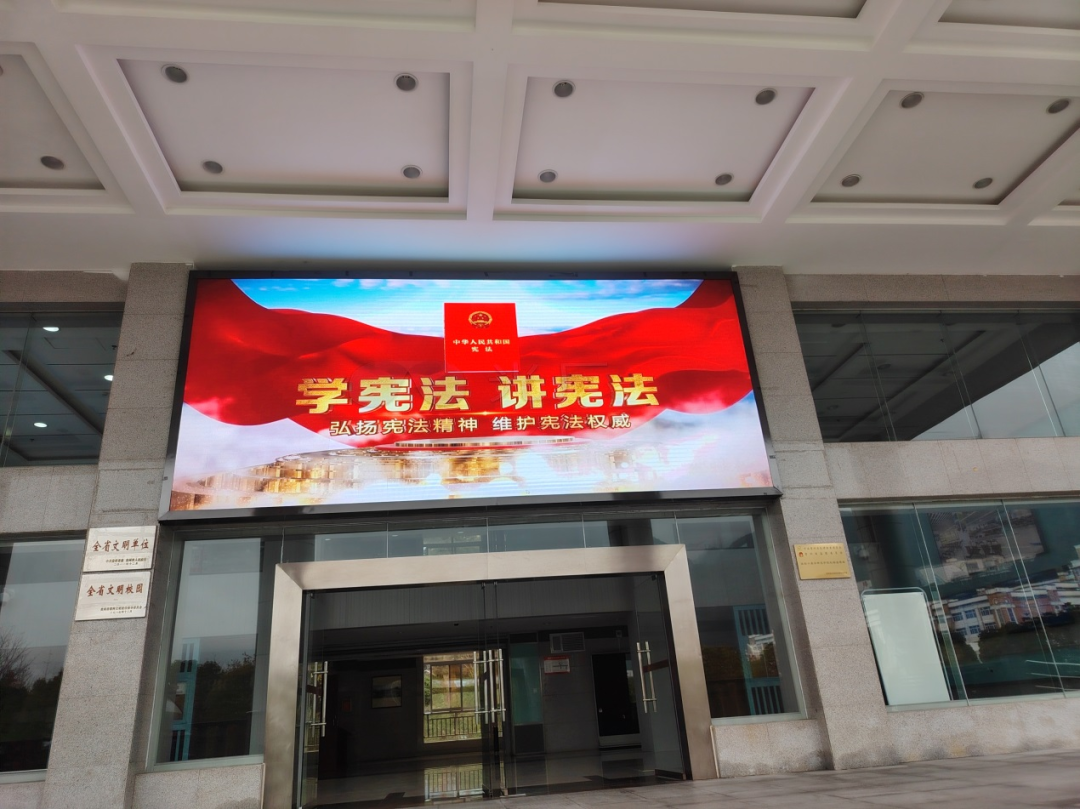 宪法宣传周期间,学校多管齐下,充分整合各类宣传资源。利用宣传栏、LED屏、官网、微信等宣传载体,全面展示《宪法》《民法典》《爱国主义教育法》《国家安全法》等法律法规,普及宪法知识。官方微信公众号发布《宪法在晨读中传遍校园》《大力弘扬宪法精神,推动进一步全面深化改革》的宪法宣传。广播台连续一周播放《宪法伴我们成长》歌曲,动人的旋律在校园中回响,让宪法精神在潜移默化中深入人心。