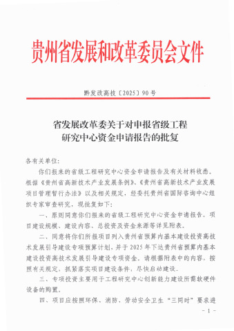 3月4日,根据《省发展改革委关于对申报省级工程研究中心资金申请报告的批复》(黔发改高技〔2025〕90号)文件,bat365申报的“贵州省煤炭资源开发与清洁利用工程研究中心” 正式获批。