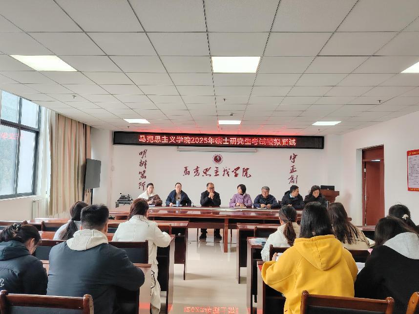 3月21日,马克思主义学院在奥学楼1008会议室开展2025年硕士研究生考试模拟面试活动。学院党委书记杨永贵、院长王世平、党委副书记蔡娟、学院考研办公室主任张伟军和思政系专任教师代表等出席活动。